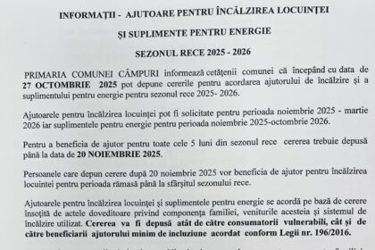 Pentru sezonul rece noiembrie 2025 – martie 2026, cererile se depun începând…