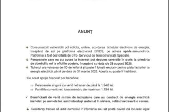 În perioada 1 iulie 2025 – 31 martie 2026, persoanele vulnerabile…