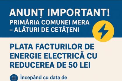 PLATA FACTURILOR DE ENERGIE ELECTRICĂ CU REDUCEREA DE 50 LEI Primăria Comunei…