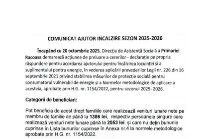 PRIMĂRIA COMUNEI MERA – ANUNȚ IMPORTANT!