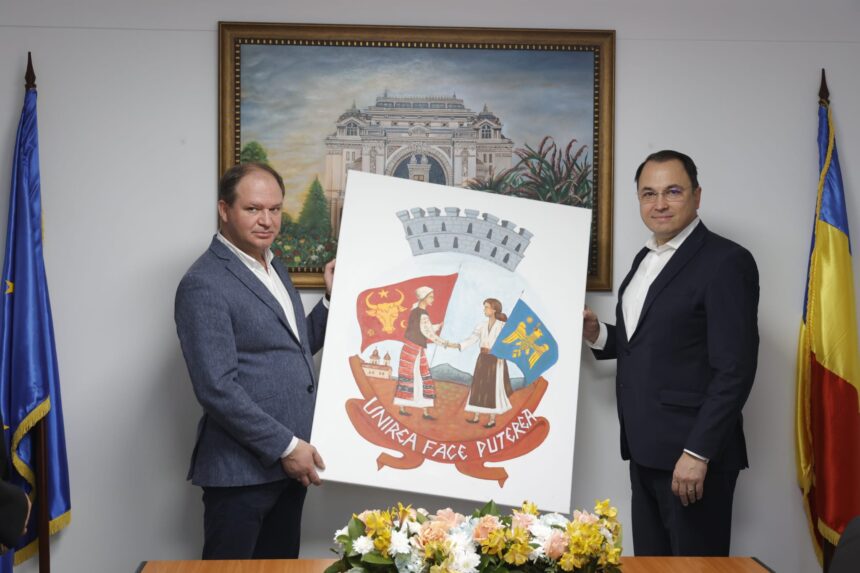 La finalul întâlnirii, i-am oferit Primarului Ion Ceban un tablou realizat de elevii Liceului de Artă „Gh. Tattarescu” cu prima stemă a Municipiului Focșani după Unirea Principatelor Române de la 24 ianuarie 1859.