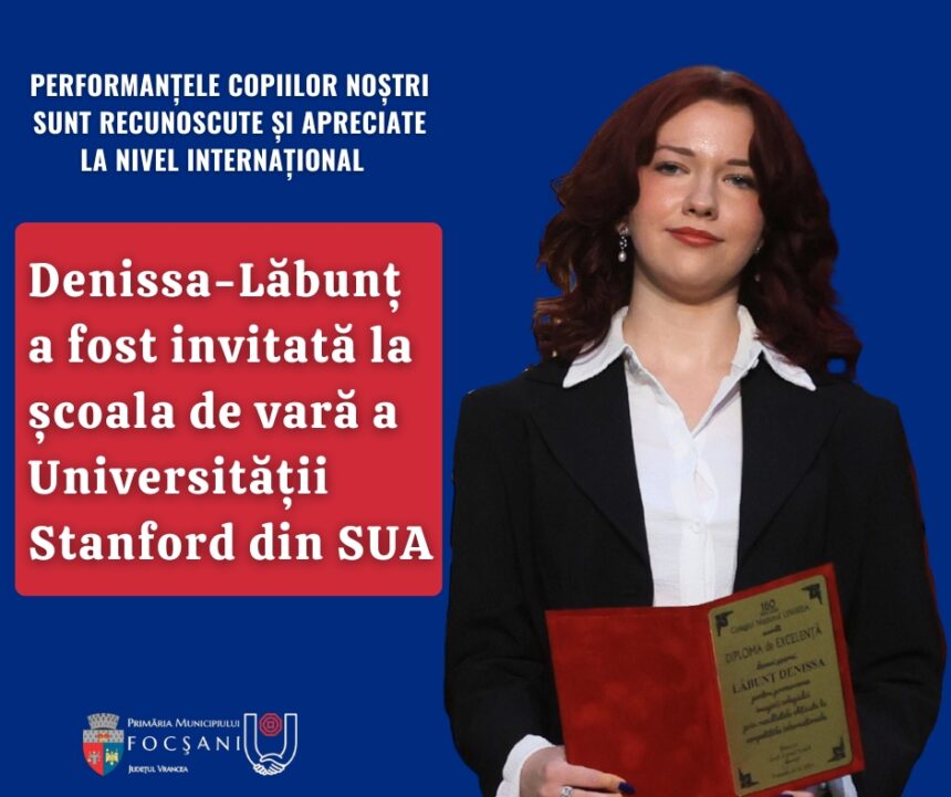 Prestigioasa Universitate Stanford o invită pe Denissa-Emanuela Lăbunț, eleva noastră de la Colegiul Național „Unirea”, la Sesiunea de vară care se va desfășura în perioada 20 iunie – 16 august 2026.