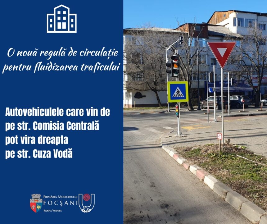 Începând de luni, 20 ianuarie 2025, a fost instituită o nouă regulă de circulație în Municipiul Focșani pentru fluidizarea traficului rutier din oraș.