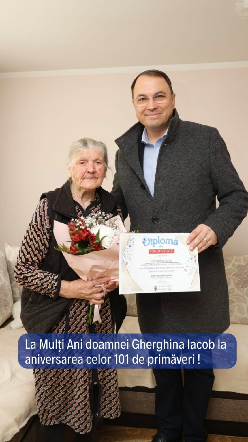 Anul trecut, când îşi serba centenarul, i-am promis doamnei Gherghina lacob că ne vom revedea în acest an cu un premiu special la aniversarea celor 101 de primăveri.