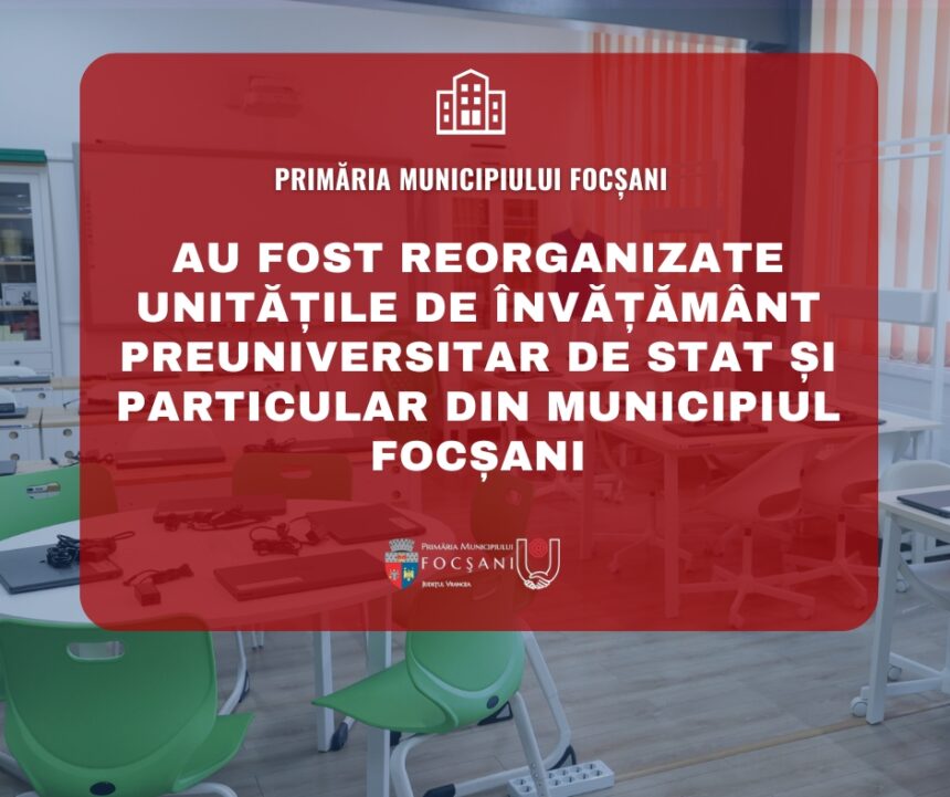 Consiliul Local Focșani a aprobat, astăzi, proiectul de hotărâre pe care l-am inițiat referitor la reorganizarea unităților de învățământ preuniversitar de stat și particular pentru anul școlar 2025-2026.