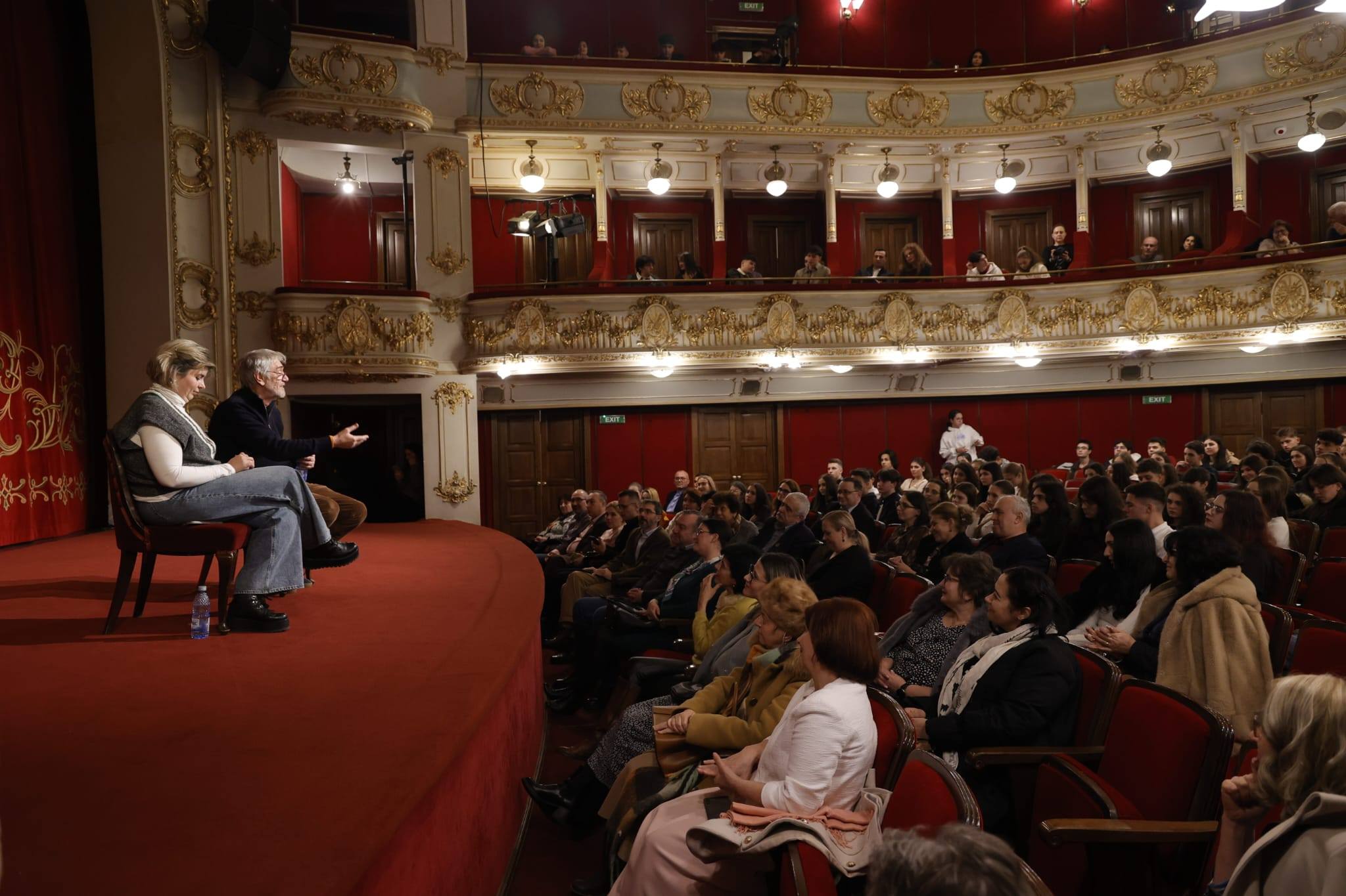 După spectacol a urmat o discuție liberă a celor doi actori cu elevii și profesorii Colegiului.