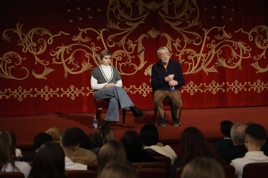 După spectacol a urmat o discuție liberă a celor doi actori cu elevii și profesorii Colegiului.
