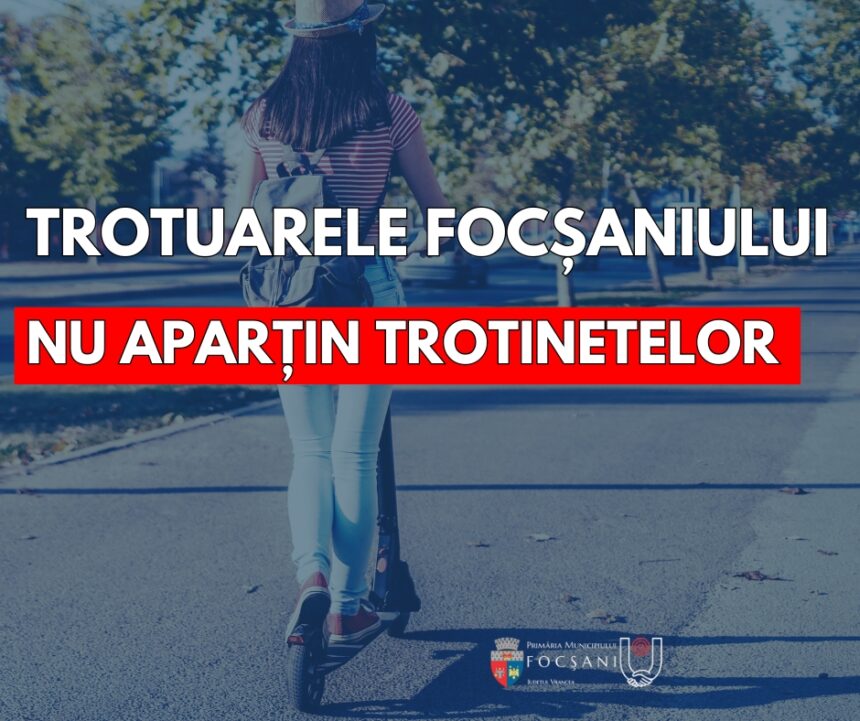 Pentru a preveni accidente rutiere grave, facem un apel către focșănenii care folosesc trotinete electrice, copii și adulți, să circule cu atenție și să îi respecte pe ceilalți participanți la trafic. Putem evita accidentarea pietonilor dacă respectăm regulile de circulație care nu sunt opționale ci ne ajută să avem un trafic rutier sigur pe străzile Municipiului Focșani.