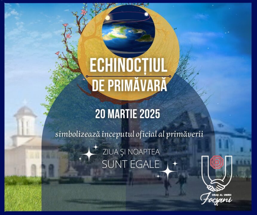 Astăzi, 20 martie 2025, la ora 11:01, a avut loc echinocțiul de primăvară, momentul în care ziua și noaptea sunt aproape egale. Acest eveniment astronomic marchează începutul oficial al primăverii, anotimpul renașterii și al speranței! La Focșani, primăvara nu aduce doar soare și natură înfloritoare, ci și energie nouă pentru proiectele și evenimentele care ne apropie ca și comunitate. Să ne bucurăm de acest nou început și de frumusețea fiecărei zile!