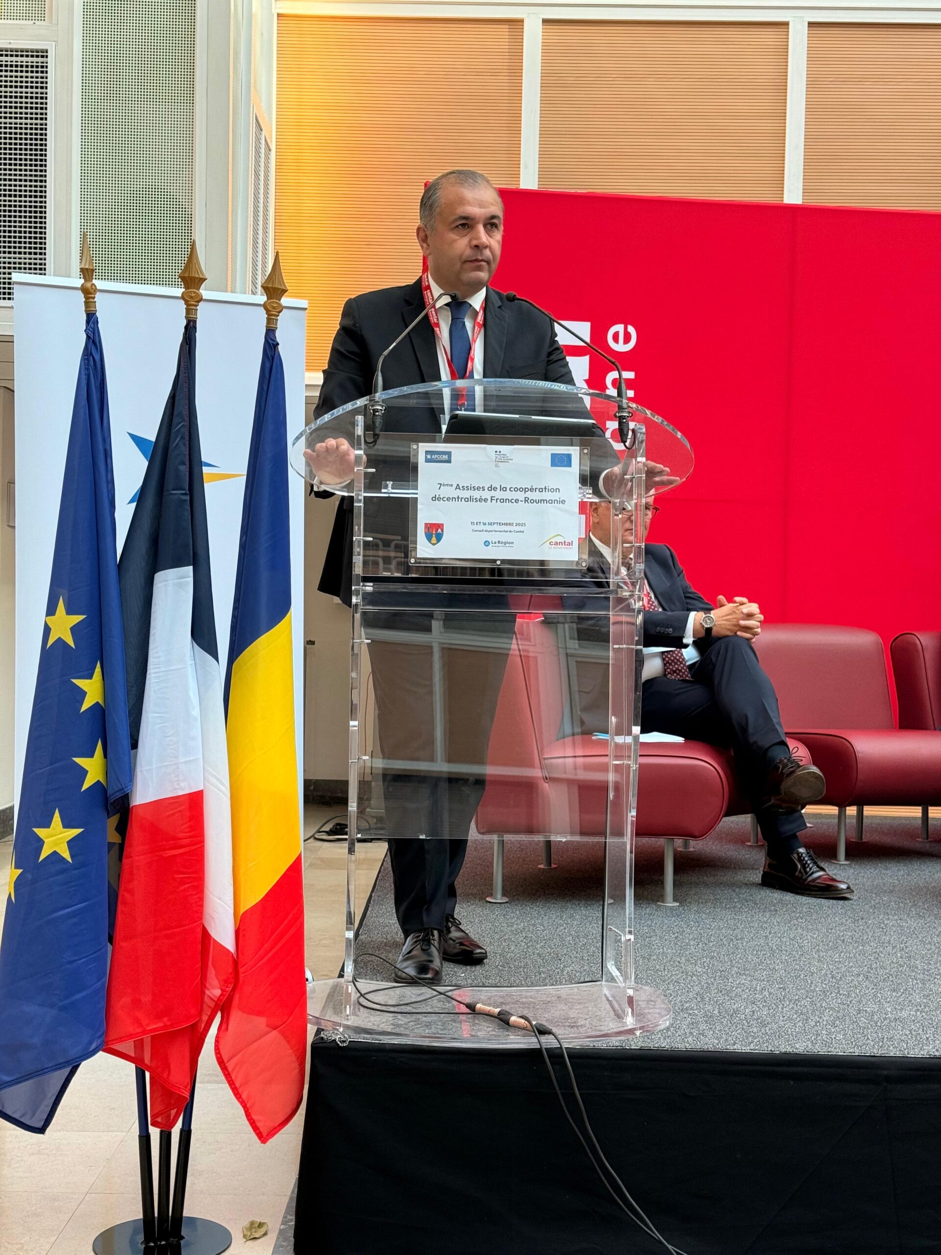 În cadrul sesiunii dedicate cooperării franco-române, președintele Nicușor Halici a susținut un discurs în dublă calitate: președinte al județului Vrancea și reprezentant al Uniunii Naționale a Consiliilor Județene din România: