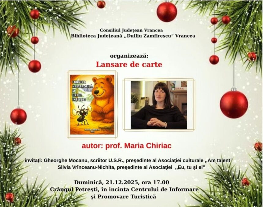 Consiliul Județean Vrancea, prin Biblioteca Județeană ,,Duiliu Zamfirescu” Vrancea, organizează, duminică, 21 decembrie 2025, ora 17.00, un eveniment deosebit!