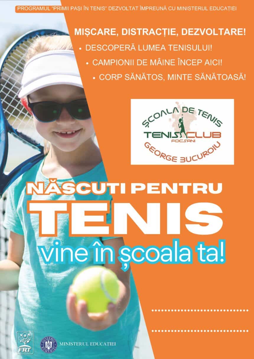 Pentru că tenisul se dezvoltă cu pași repezi iar copiii se îndreaptă tot mai mult și cu entuziasm către sportul alb, Tenis Club Focșani – Școala de Tenis George Bucuroiu s-a implicat cu dăruire în acest proiect ”Născuți pentru tenis”, o bună oportunitate pentru a descoperi tinere talente dar și pentru a trezi interesul copiilor și familiilor lor, care vor avea șansa să practice unul dintre cele mai iubite sporturi chiar în timpul orelor de Educație Fizică.