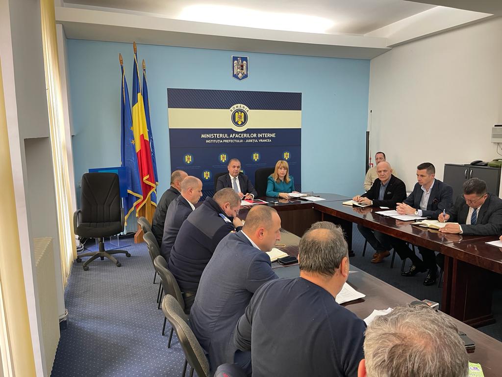 În cadrul ședinței Colegiului Prefectural din 23.11.2023, prefectul județului Vrancea, Nicușor Halici, a propus spre dezbatere o analiză a campaniei agricole de vară-toamnă din anul agricol 2022-2023, informări privind activitatea APIA – Centrul Județean Vrancea cu privire la primirea și administrarea cererilor, pe acte normative și tipuri de subvenții în anul 2023, a fost dezbătut planul de măsuri și acțiuni sanitar-veterinare care vor fi întreprinse în județul Vrancea pentru protejarea sănătății cetățenilor în perioada premergătoare Sărbătorilor de iarnă în anul 2023 și a fost aprobat Planul comun de acțiuni ce vor fi întreprinse în județul Vrancea pentru protejarea sănătății și siguranței cetățenilor, în perioada Sărbătorilor de iarnă.