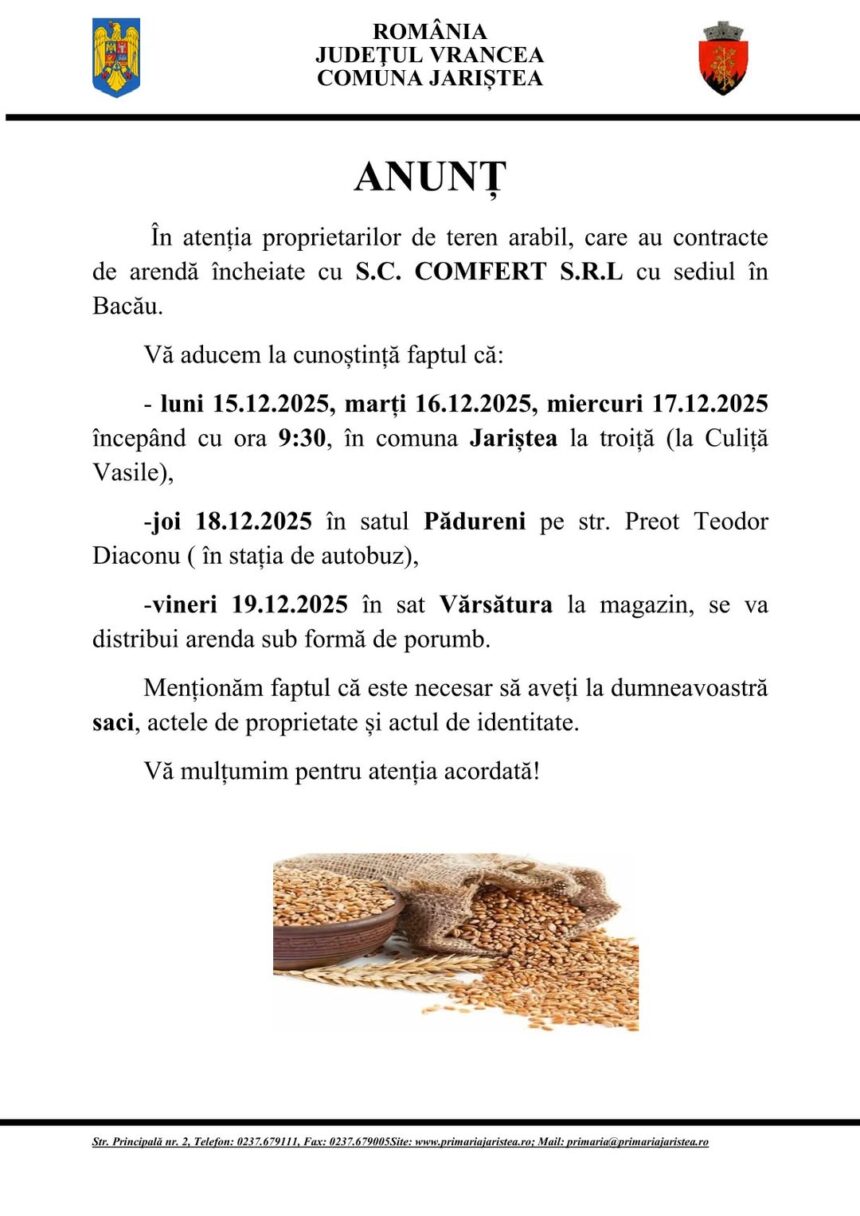 AdministrativStiri Vrancea Primăria Jariștea: INFORMARE 13 decembrie 2025 DISTRIBUIE În atenția celor care au contracte încheiate cu S.C. COMFERT SRL. Ciprian Grama, primarul comunei Jariștea Știri despre: Primăria Jariştea, stiri de focsani, stiri de ultima ora vrancea, stiri din vrancea, stiri vrancea, stiri vrancea azi Vrancenii 13 decembrie 2025 13 decembrie 2025 Articolul anterior Primăria Gugești: INFORMARE Articolul următor Nicușor Halici: Când Crăciunul ajunge acolo unde e cea mai mare nevoie! Urmărește-ne pe Facebook Ultimele știri din Vrancea Primăria Golești: 𝐂𝐚𝐫𝐚𝐯𝐚𝐧𝐚 𝐝𝐞 𝐒𝐚̆𝐧𝐚̆𝐭𝐚𝐭𝐞 𝐚 𝐂𝐫𝐮𝐜𝐢𝐢 𝐑𝐨𝐬̦𝐢𝐢 𝐑𝐨𝐦𝐚̂𝐧𝐞 𝐩𝐨𝐩𝐨𝐬𝐞𝐬̦𝐭𝐞 𝐢̂𝐧 𝐆𝐨𝐥𝐞𝐬̦𝐭𝐢! Administrativ Stiri Vrancea Noutăți la Teatrul Focșani! Stiri Vrancea Restaurarea Sălii de lectură a Bibliotecii Județene este în plină desfășurare Stiri Vrancea EXPOZIȚIE DE ARTĂ VIZUALĂ DEDICATĂ UNIRII PRINCIPATELOR ROMÂNE Stiri Vrancea Apă de calitate pentru toți vrâncenii – investiții echilibrate pentru dezvoltarea durabilă a județului Stiri Vrancea ÎN SPRIJINUL SI PENTRU SANATATEA CETATENILOR DIN COMUNA NISTORESTI Stiri Vrancea Vizită de lucru la Bioaldevin Odobești – exemplu de economie circulară și investiție strategică pentru Vrancea Stiri Vrancea Cristi Misăilă: Ședința extraordinară a Consiliului Local al Municipiului Focșani din 19 ianuarie 2026 Administrativ Stiri Vrancea