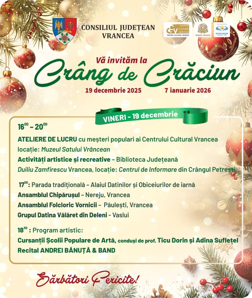 Vă invităm mâine, cu inimile deschise, la deschiderea Festivalului Național de Datini și Obiceiuri de Iarnă, un eveniment care aduce împreună tradiția, bucuria și spiritul sărbătorilor.