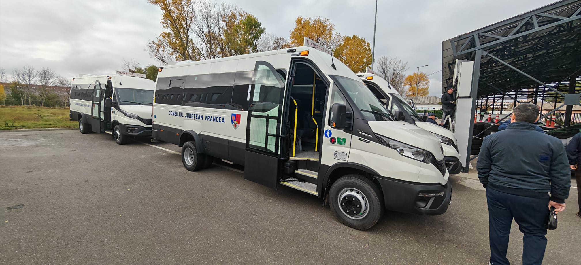 Consiliul Județean Vrancea predă către localități cele 24 de microbuze electrice școlare achiziționate prin PNRR, pentru transportul elevilor din mediul rural. Microbuzele au fost recepționate, introduse în patrimoniu și transferate cu titlu gratuit către cele 24 de localități beneficiare.