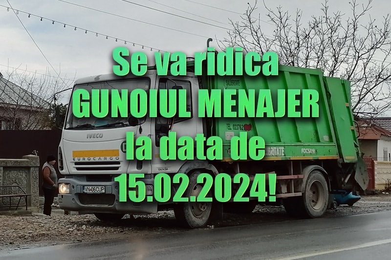 Vă reamintim că firma Salubrizare și Servicii Publice Focsani S.A. va ridica gunoiul menajer mâine, 15.02.2024.