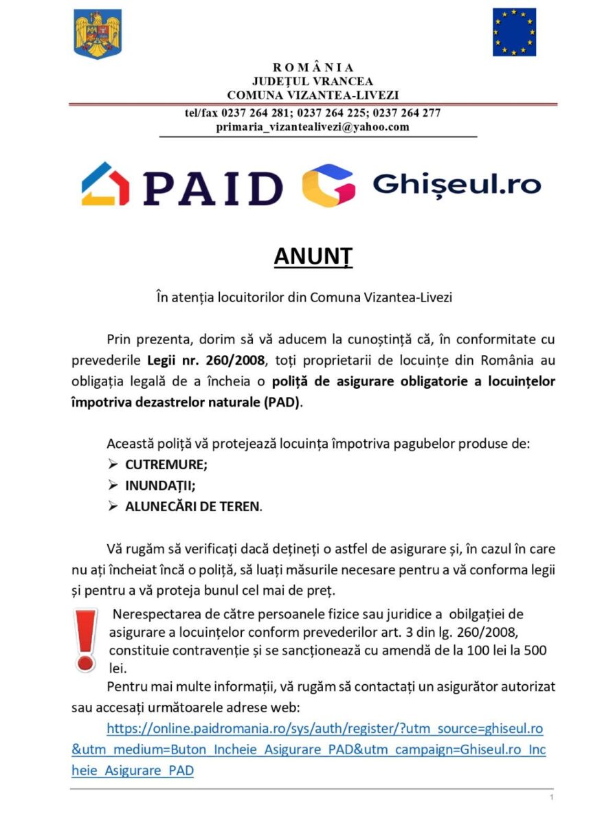 AdministrativStiri Vrancea Primăria Vizantea Livezi: INFORMARE 21 august 2025 DISTRIBUIE Primăria comunei Vizantea Livezi Știri despre: Primăria Vizantea Livezi, stiri de focsani, stiri de ultima ora vrancea, stiri din vrancea, stiri vrancea, stiri vrancea azi, vizantea-livezi Vrancenii 21 august 2025 21 august 2025 Articolul anterior Cristi Misăilă: Duminică, 24 august, Piața Unirii va răsuna pe acordurile vocilor locale Articolul următor Primăria Vidra: INFORMARE Urmărește-ne pe Facebook Ultimele știri din Vrancea Cristi Misăilă: Rezultate excelente pentru elevii focșăneni la competițiile școlare! Administrativ Stiri Vrancea Primăria Vidra: Meteorologii au emis avertizare meteorologică de COD PORTOCALIU și COD GALBEN Administrativ Stiri Vrancea Primăria Obrejița: INFORMARE Administrativ Stiri Vrancea Primăria Jariștea: INFORMARE Administrativ Stiri Vrancea Primăria Vidra: Meteorologii au emis avertizare meteorologică de COD PORTOCALIU și COD GALBEN Administrativ Stiri Vrancea Intervenție amplă la Soveja Stiri Vrancea Consiliul Județean Vrancea pune Baza Salvamont Soveja la dispoziția familiilor sinistrate Administrativ Stiri Vrancea Cristi Misăilă: Am avut onoarea să ofer premiile speciale la Olimpiada Națională “Lectura ca abilitate de viață” Administrativ Stiri Vrancea