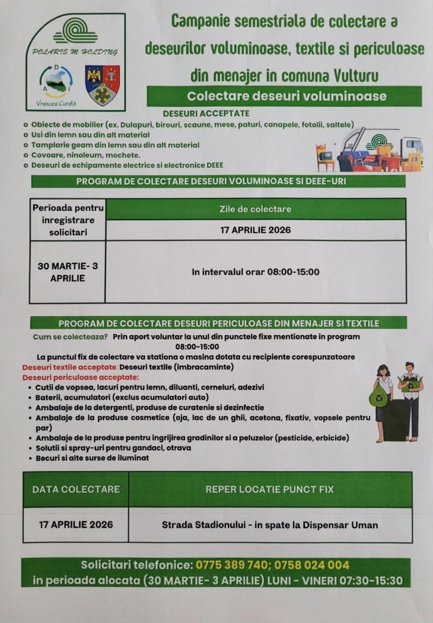 AdministrativStiri Vrancea Primăria Vulturu: INFORMARE 18 martie 2026 DISTRIBUIE Primăria comunei Vulturu Știri despre: Primăria Vulturu, stiri de focsani, stiri de ultima ora vrancea, stiri din vrancea, stiri vrancea, stiri vrancea azi, Vulturu Vrancenii 18 martie 2026 18 martie 2026 Articolul anterior Cristi Misăilă: Primăria Municipiului Focșani are porțile deschise pentru toți cetățenii Articolul următor Cristi Misăilă: Continuăm modernizarea infrastructurii rutiere din Municipiul Focşani! Urmărește-ne pe Facebook Ultimele știri din Vrancea Primăria Garoafa: Susținem performanța locală, susținem sportul și construim pentru viitor! Administrativ Stiri Vrancea Cristi Misăilă: Continuăm modernizarea infrastructurii rutiere din Municipiul Focşani! Administrativ Stiri Vrancea Cristi Misăilă: Primăria Municipiului Focșani are porțile deschise pentru toți cetățenii Administrativ Stiri Vrancea Cristi Misăilă: Conferință de presă Administrativ Stiri Vrancea Anunț important pentru cetățenii orașului Mărășești Stiri Vrancea Primăria Vizantea Livezi: Anunț privind întreruperile de furnizare a energiei electrice Administrativ Stiri Vrancea Cristi Misăilă: Din ce în ce mai multe familii aleg ca Focșaniul să fie acasă! Administrativ Stiri Vrancea Întâlnire de lucru cu APIA, la Primăria Orașului Panciu Stiri Vrancea