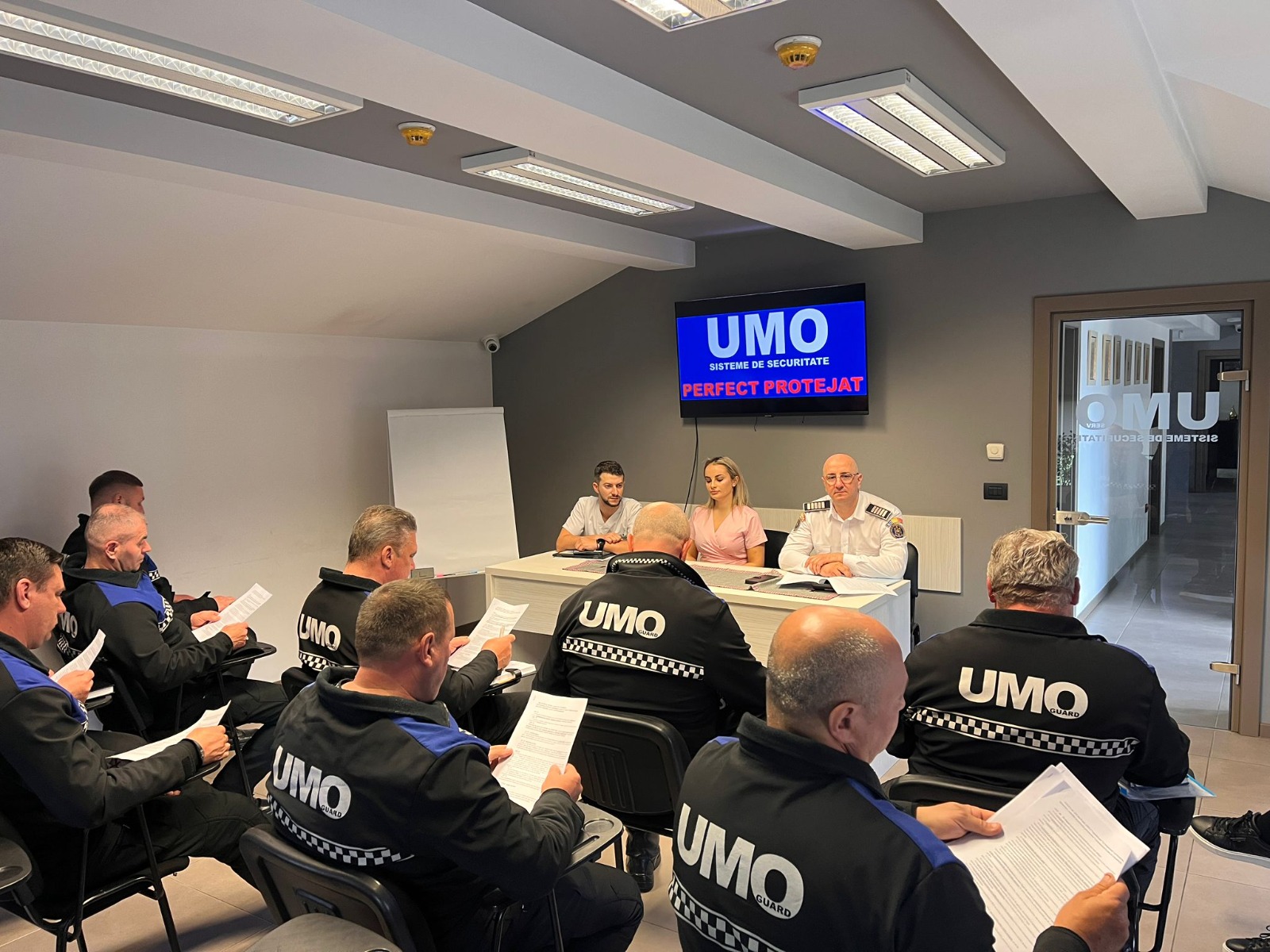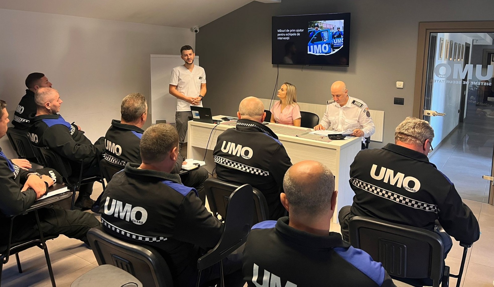Astăzi, la sediul nostru din Focșani, colegii din Departamentul de Intervenții Rapide au participat la o sesiune de instruire dedicată procedurilor de acordare a primului ajutor în situații de urgență, susținută de medicul rezident Florin Cucoș și asistenta medicală Nicoleta Ochean. În măsura în care agenții noștri sunt primii care ajung la un eveniment, este extrem de important să luăm măsurile de prim ajutor ca la carte! Totodată, activitatea de azi a fost completată de o sesiune de informare susținută de Agent Șef Principal Crinel Airinei, de la Poliția Municipiului Focșani – Compartimentul Sisteme de Securitate Privată, în cadrul căreia au fost prezentate situațiile legislative la zi din domeniul securității private și recomandările privind desfășurarea activităților din domeniul nostru de activitate. Discuțiile au vizat importanța respectării legislației în vigoare și colaborarea eficientă cu autoritățile competente în domeniu. Prin astfel de inițiative și instruiri periodice, ne asigurăm că Echipa UMO este mereu pregătită să acționeze prompt și eficient, oferind servicii de înaltă calitate și siguranță deplină clienților noștri. Mulțumim invitaților și îi asigurăm de respectul și prețuirea noastră pentru timpul acordat și implicarea totală manifestată pe parcursul întregii zile!