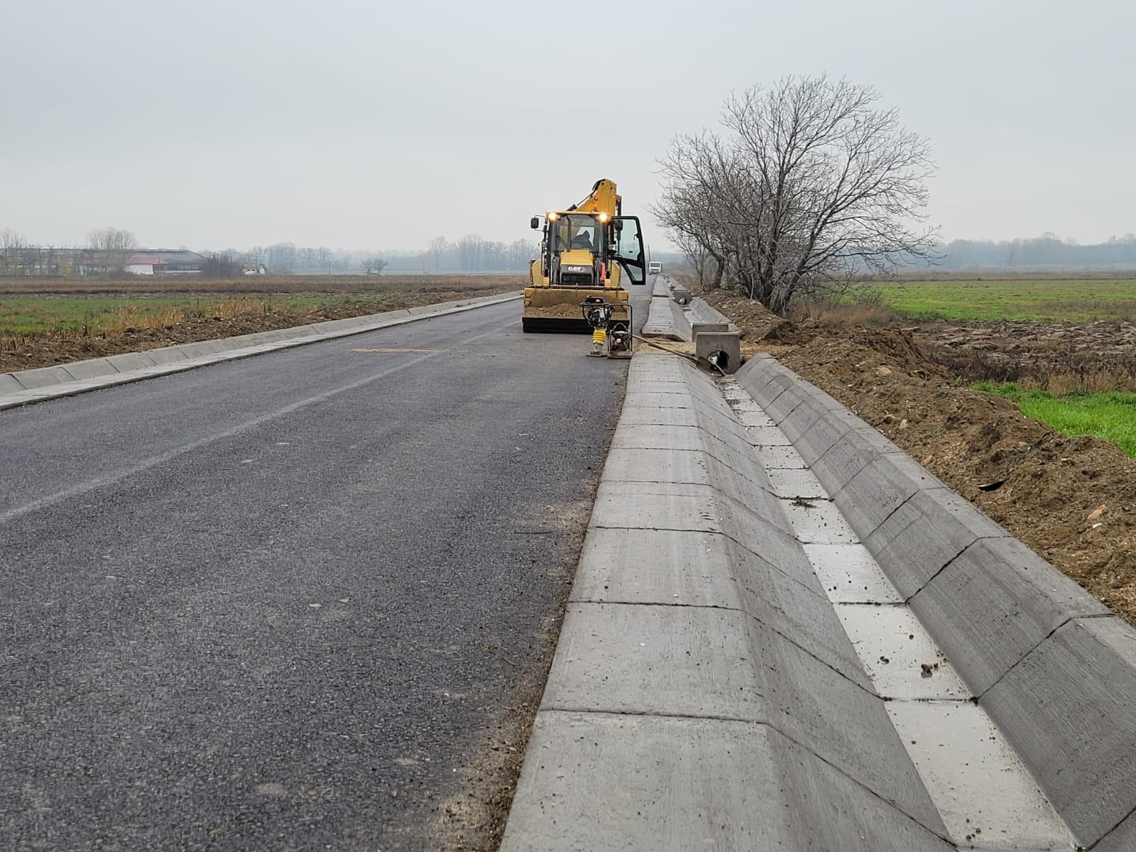 Pe sectorul Ciușlea – Străjescu (2,6 km) binderul este turnat, se lucrează la accese în proprietăți, șanțuri betonate și podețe transversale, iar terenul este pregătit pentru stratul de uzură, ce va fi aplicat în sezonul cald.