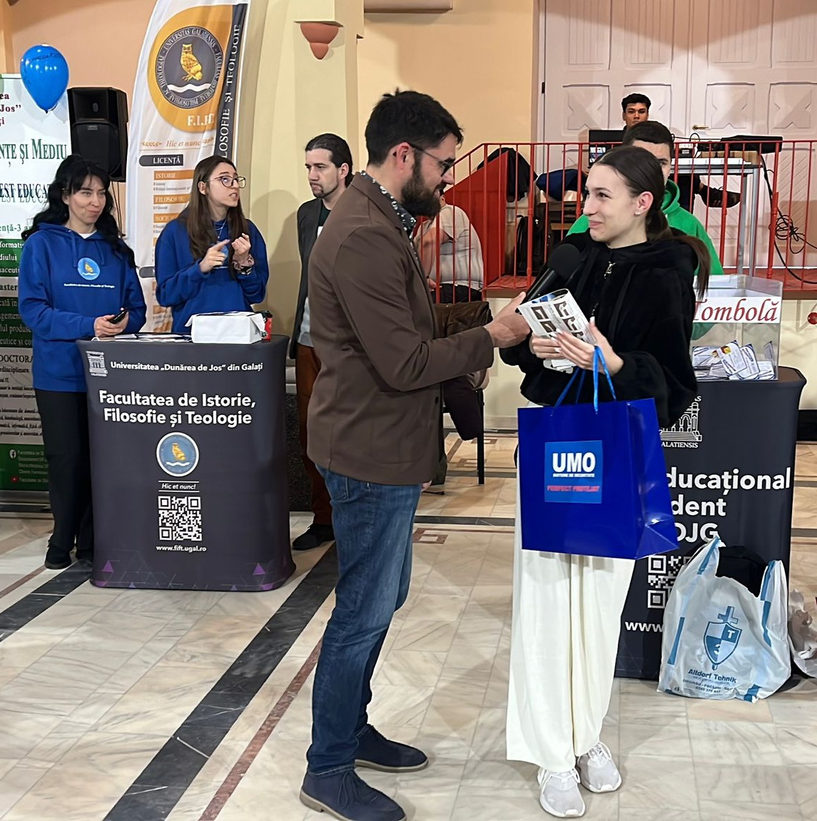 Echipa UMO a fost prezentă astăzi la Târgul Educațional “Fii student la UDJG!” organizat la Focșani de Universitatea Dunărea de Jos Galați fiind, pentru al treilea an consecutiv, partener al acestui eveniment care susține educația și viitorul tinerilor! Târgul educațional a reprezentant un bun prilej de întâlnire cu elevii din județul nostru, membrii echipei UMO împărtășindu-le din experiența de peste 30 de decenii a companiei noastre pentru că, prin acțiunile noastre, am fost mereu preocupați să deschidem drumuri spre viitor și să încurajăm fiecare pas făcut către succes. Pentru a celebra acest eveniment special, am oferim cu drag cadouri viitorilor studenți la tombola organizată și le-am urat mult succes în alegerea drumului profesional!