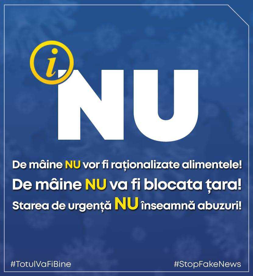 Spune NU știrilor false (fake news)! Rațiunea trebuie să ne conducă și în aceste momente dificile! Cei mai mari dușmani sunt frica și panica! #stauacasă