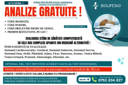 CONSULTAȚII COMPUTERIZATE LA OCHI - VINERI 12.09.2025 LA SALA DE FESTIVITĂȚI (PRIMĂRIE)…