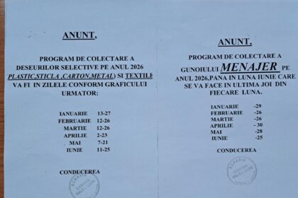 ANUNȚ – Program colectare deșeuri 2026 (ianuarie–iunie) Vă informăm că, în perioada…